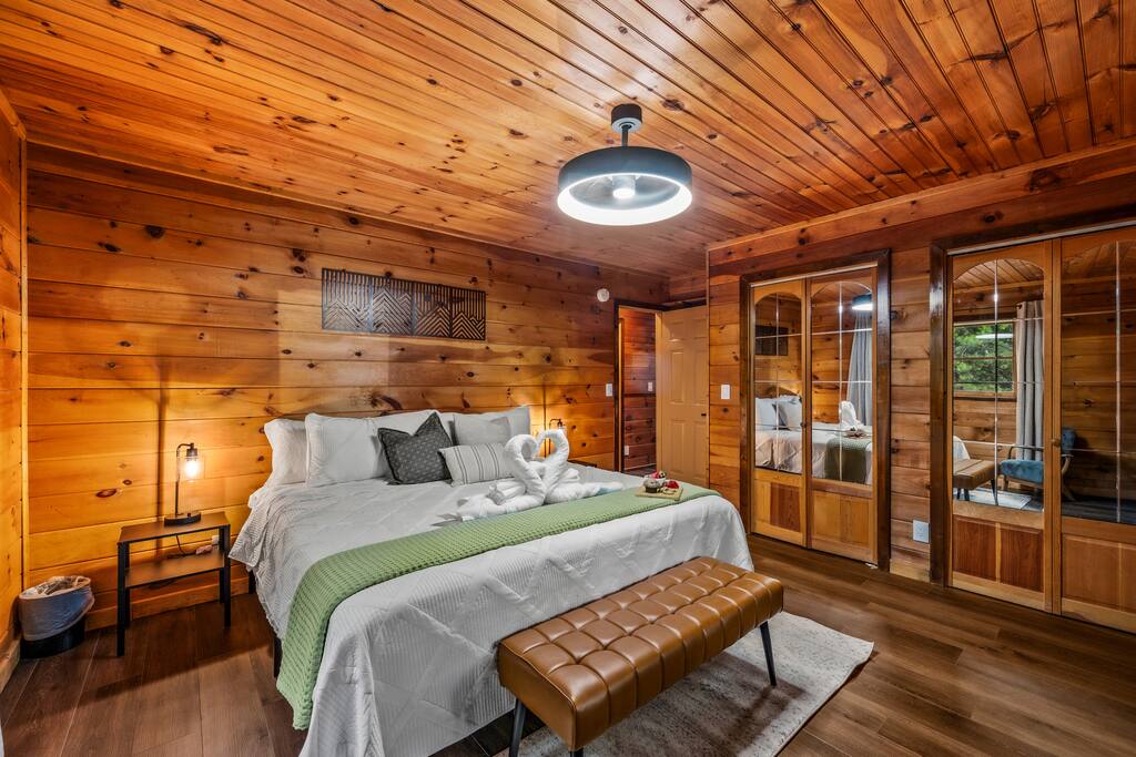 Looking for a family getaway that’s fun, cozy, and close to everything? You’ve found it! Our 5-bedroom cabin is designed with families in mind, from toddlers to grandparents. Relax on the wraparound decks while the kids play. Soak in the heated swim spa after a day at Dollywood. Challenge each other to karaoke, pool, Mario Kart, or cornhole. With plenty of space for up to 12, multiple hangout zones, and serene views, Stonehaven Bliss is where your favorite family memories are made.